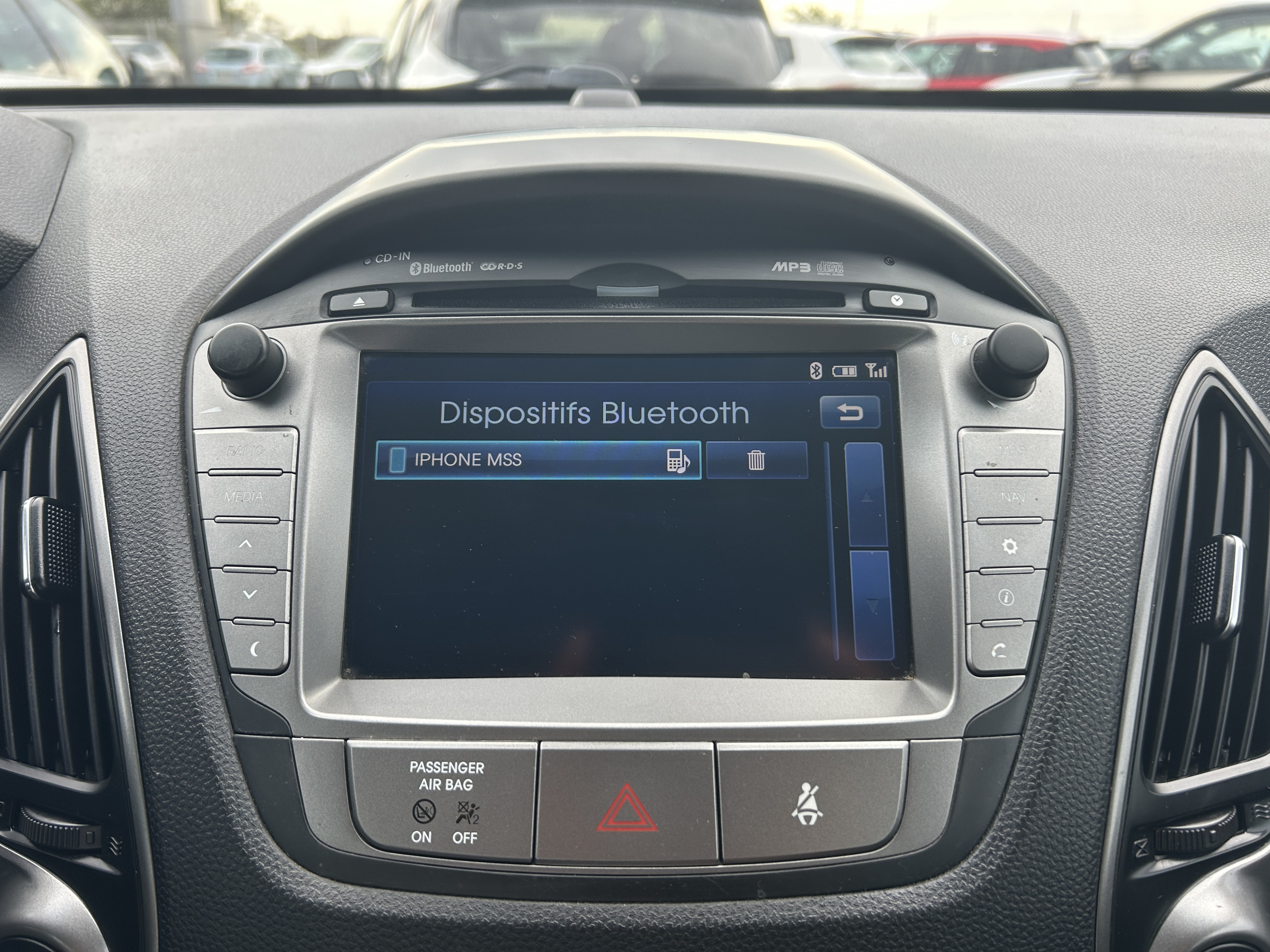 Hyundai IX35 1.7 CRDI 115CH CREATIVE BLUE DRIVE, (S.U.V.), BLANC, 6cv, 5 portes, mise en circulation le 29-07-2015, garantie 3 mois (3 MOIS). 5 places, couleur intérieur : GRIS, longueur : 4,41 mètres, boîte de vitesse : manuelle OPTIONS ET EQUIPEMENTS : Audio - Télécommunications - 7 Haut parleurs - Commandes du système audio au volant - Commandes vocales - Ecran tactile - Fonction MP3 - GPS Cartographique - Kit mains-libres Bluetooth - Lecteur CD - Prise USB - Prise auxiliaire de connexion audio - Prise iPod - Radio - TMC Conduite - Aide au démarrage en côte - Arrêt et redémarrage auto. du moteur - Capteur de luminosité - Capteur de pluie - Régulateur de vitesse - Système d'assistance à la descente Extérieur - Barres de toit - Becquet arrière - Boucliers AV et AR couleur caisse - Caméra de recul - Essuie-glace arrière - Feux arrière à LED - Feux de freinage d'urgence - Feux de jour à LED - Feux de position à LED - Jantes Alu - Phares halogènes - Poignées ton carrosserie - Radar de stationnement AR - Répétiteurs de clignotant dans rétro ext - Rétroviseurs dégivrants - Rétroviseurs rabattables électriquement - Rétroviseurs électriques - Toit ouvrant électrique panoramique - Vitres arrière et lunette AR surteintées Intérieur - Accoudoir arrière - Appui-tête conducteur réglable hauteur - Appui-tête passager réglable en hauteur - Bacs de portes arrière - Bacs de portes avant - Banquette 60/40 - Banquette AR rabattable - Banquette arrière 3 places - Boite à gants éclairée et réfrigérable - Clim automatique bi-zones - Compte tours - Ecran multifonction couleur - Filets de coffre - Fixations Isofix aux places arrières - Lampe de coffre - Lampes de lecture à l'avant - Lunette AR dégivrante - Lunette arrière - Miroir de courtoisie conducteur éclairé - Miroir de courtoisie passager éclairé - Ordinateur de bord - Pare-brise thermique - Poches d'aumonières - Pommeau de levier vitesse en cuir - Porte-gobelets arrière - Porte-gobelets avant - Prise 12V - Rétroviseur intérieur électrochrome - Siège conducteur avec réglage lombaire - Siège conducteur chauffant - Siège conducteur réglable en hauteur - Siège passager chauffant - Sièges arrière chauffants - Tablette cache bagages - Température extérieure - Verrouillage centralisé des portes - Verrouillage centralisé à distance - Vitrage calorifuge - Vitres arrière électriques - Vitres avant électriques - Vitres teintées - Volant cuir - Volant réglable en profondeur et hauteur Sécurité - ABS - Aide au freinage d'urgence - Airbag conducteur - Airbag passager déconnectable - Airbags latéraux avant - Airbags rideaux AV et AR - Alarme - Alarme périmétrique - Antidémarrage électronique - Antipatinage - Appuis-tête avant actifs - Ceintures avant ajustables en hauteur - Contrôle élect. de la pression des pneus - EBD - ESP - Phares antibrouillard - Préparation Isofix - Troisième ceinture de sécurité Autres équipements et informations : - CONTROLE TECHNIQUE OK DE MOINS DE 6 MOIS - EXTENSION DE GARANTIE POSSIBLE - REPRISE POSSIBLE - VEHICULE REVISE ET GARANTI - Z&D CALLENS RUE D'ESPAGNE 84100 ORANGE - Creamy White - Cuir/Tissu Noir Kilométrage garanti. Référence annonce : 1284